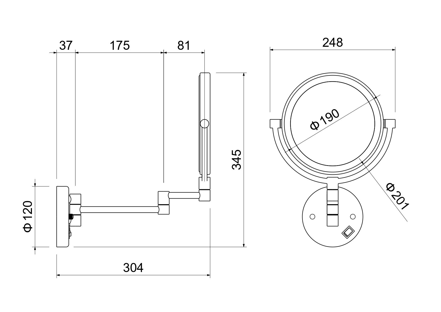 • двухсторонее телескопическое зеркало