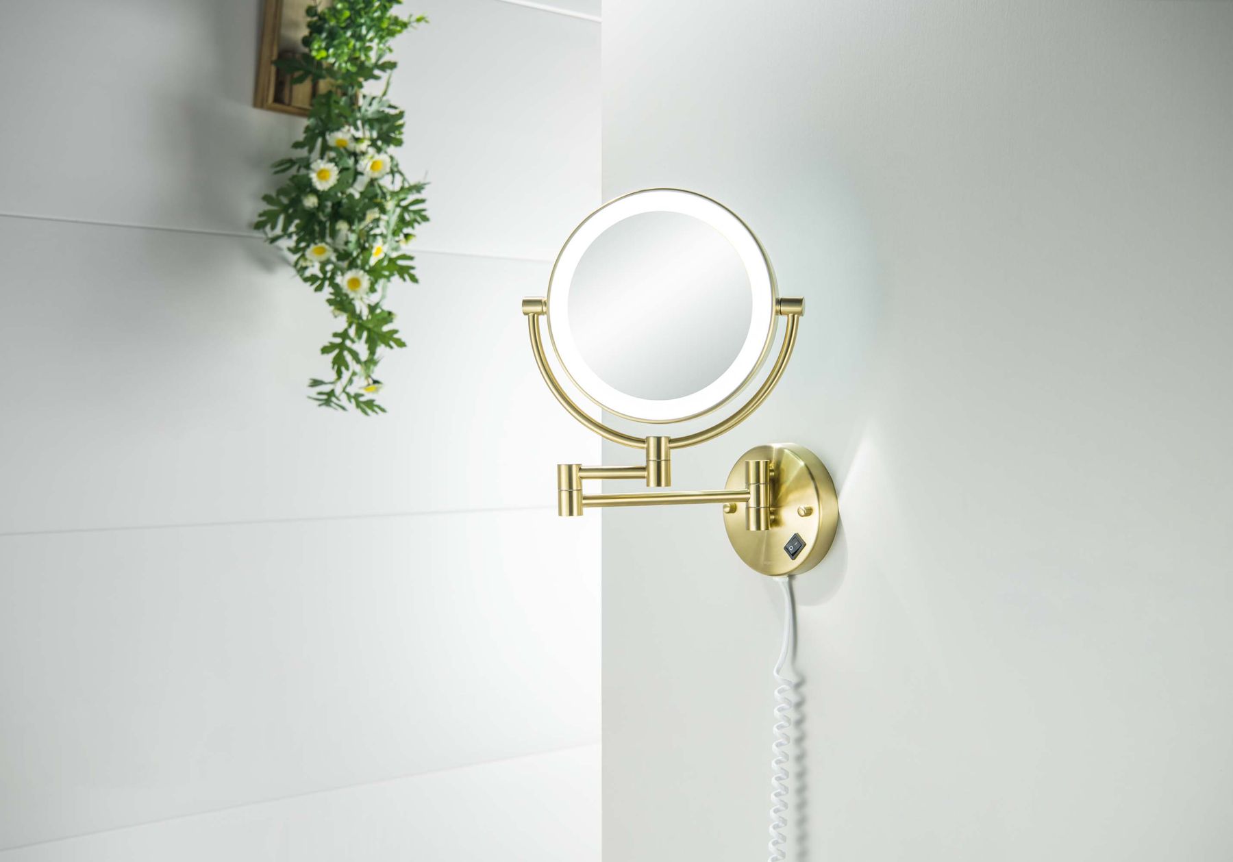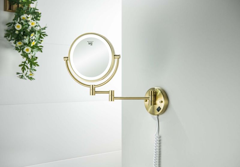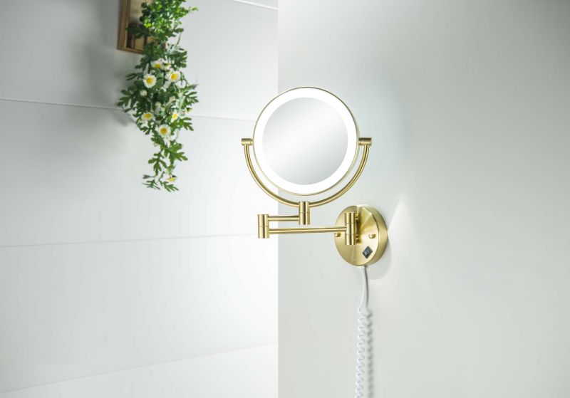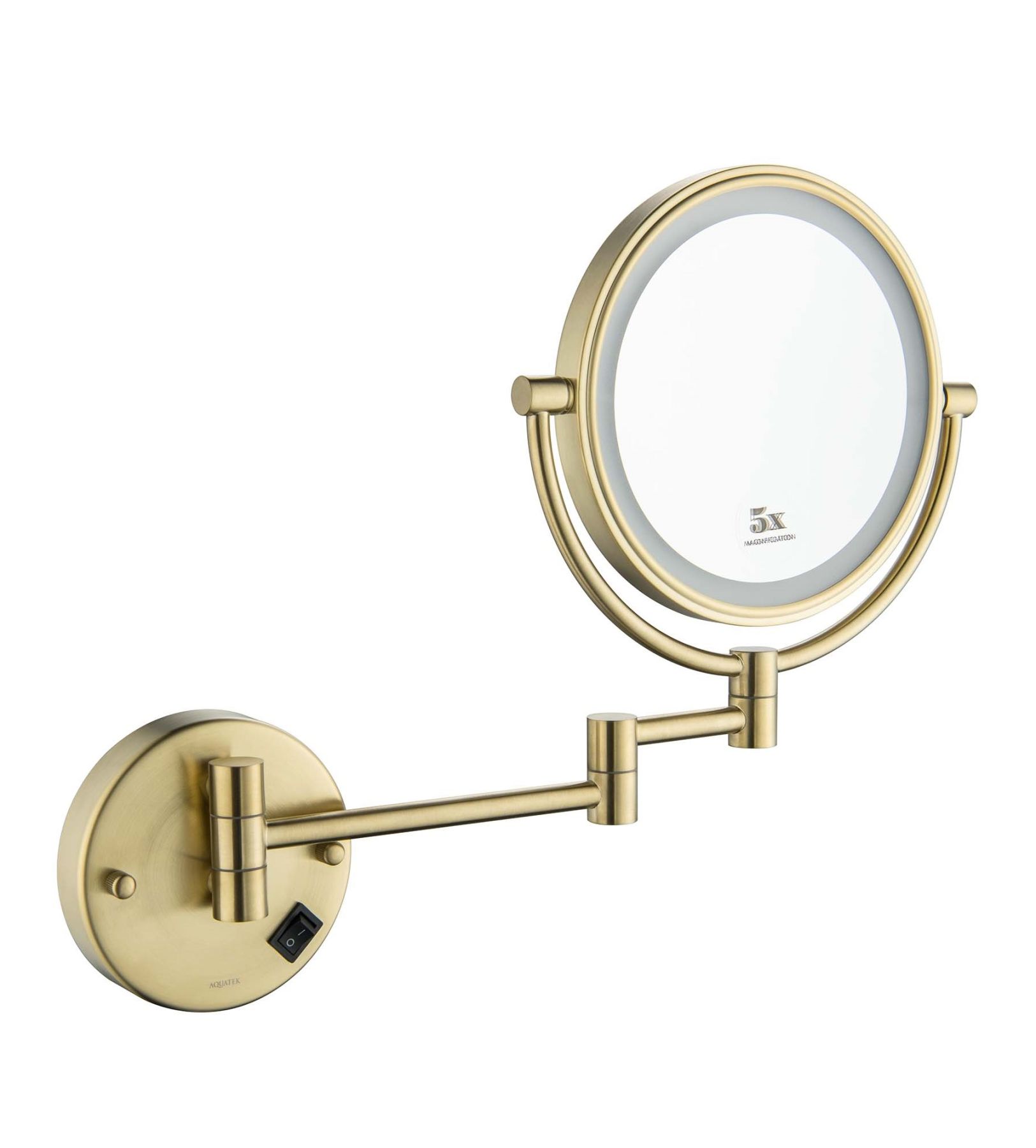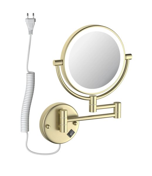 Зеркало косметическое настенное Aquatek AQ4915BG с подсветкой 5х шлифованное золото