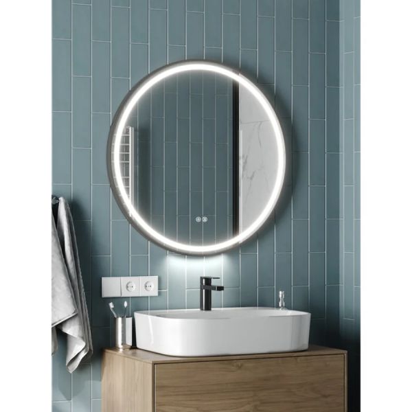 Зеркало Maretti Elena EA1480R03EL 80x80 см с LED подсветкой, сенсорным управлением и функцией антипар – это идеальное решение для вашей ванной комнаты. Модель Elena EA1480R03EL с элегантным черным обрамлением и диаметром 80 см, станет идеальным украшением в интерьере вашей ванной комнаты. Основное преимущество этого зеркала – встроенная светодиодная лента, обеспечивающая яркое и равномерное освещение, за счет использования светодиодов SMD 2835 со сроком службы более 50000 часов. Смена цветовой температуры в диапазоне от 2700K до 6500K создает комфортные условия для любого времени суток. Водонепроницаемый и огнестойкий светодиодный драйвер и надёжный блок питания LETARON гарантирует долговечность и безопасность эксплуатации. Сенсорный переключатель обеспечивает простоту и удобство управления, а также долговечность – более 300 000 нажатий, что эквивалентно примерно 10 годам службы. Функция антизапотевания (площадью 30х20 см) предотвращает образование конденсата на поверхности зеркала, что особенно удобно после принятия душа или ванны. Качество и надежность зеркала подтверждены международными сертификатами (EAC, ETL, CE, SAA). Экологически чистое стекло третьего поколения, без использования меди, толщиной 5 мм, прошло испытания в агрессивной солевой среде на протяжении 480 часов. Задняя часть зеркала полностью закрыта, что обеспечивает дополнительную защиту от влаги и пыли с уровнем защиты по стандарту IP44.