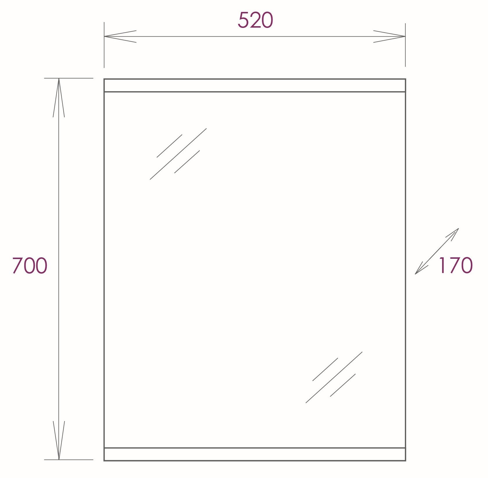 Размер зеркала 52 х 17 х 70 см.