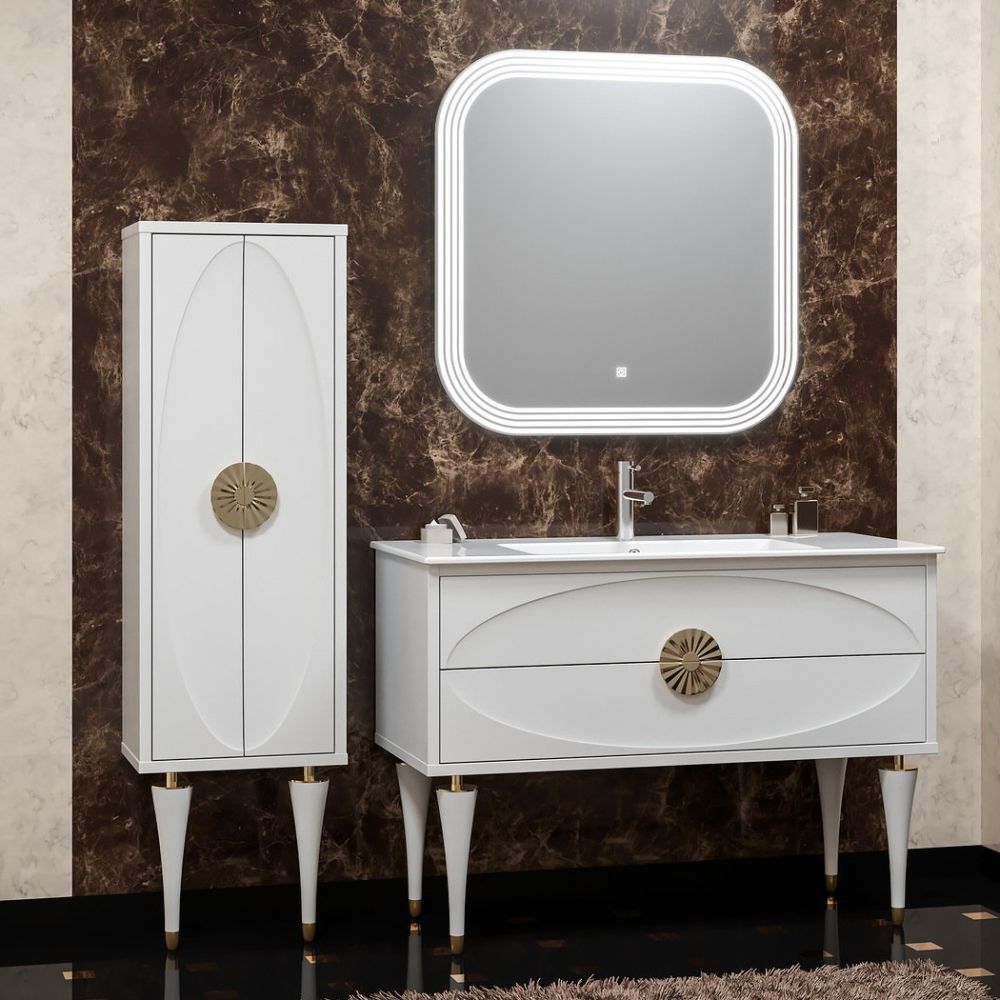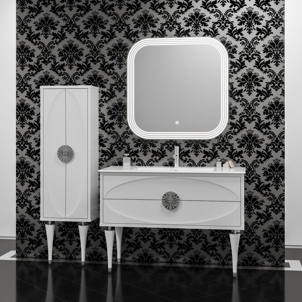 Коллекция Ибица возвращает нас в эпоху итальянского модернизма. Оригинальный контур на фасадах в сочетании с белым глянцевым покрытием придают модели индивидуальный дизайн, а изящные ножки из массива бука, обрамленные декоративными элементами, добавляют легкость восприятия. Коллекцию дополняет дизайнерское зеркало со светодиодной подсветкой и сенсорным датчиком включения. Ультратонкая керамическая раковина добавляет модели воздушность. Выдвижные ящики оборудованы механизмом с плавным закрыванием.