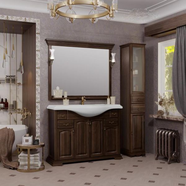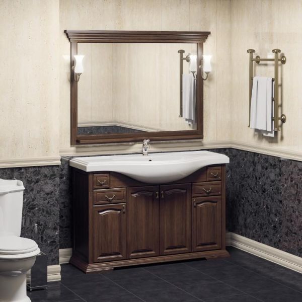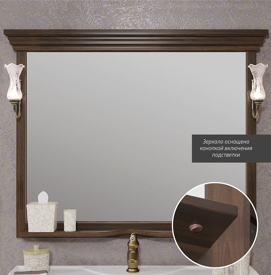 Светильники приобретаюся отдельно.Зеркала по умолчанию идут с отверстиями под светильники. В случае отсутствия необходимости заказа светильников, возможна комплектация зеркала декоративными накладками серебро или бронза.Коллекция Риспекто символизирует лучшие традиции неоклассики в сочетании с необыкновенной функциональностью и простотой дизайна.Строгий контроль при изготовлении изделий исключает наличие малейших дефектов. Зеркальное полотно дает четкое отражение без каких-либо искажений. Цвет орех антикварный прекрасно дополнит интерьер ванной комнаты.