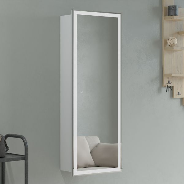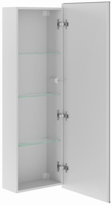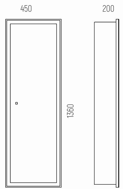 Зеркало-пенал Делавэр 45 оснащено распашной зеркальной дверью. Зеркало с круговой областью пескоструя, внутри 3 стеклянные полочки. Петли у двери с доводчиками. Зеркало-пенал можно сделать правого или левого открывания. Видимые части зеркального шкафа - LED зеркало, у которого задняя стенка закрыта коробом из АВС-пластика. Подсветка на зеркале включается и выключается нажатием кнопки на самом зеркале. Сенсорный выключатель с регулировкой яркости. На боковине снаружи находится розетка.
