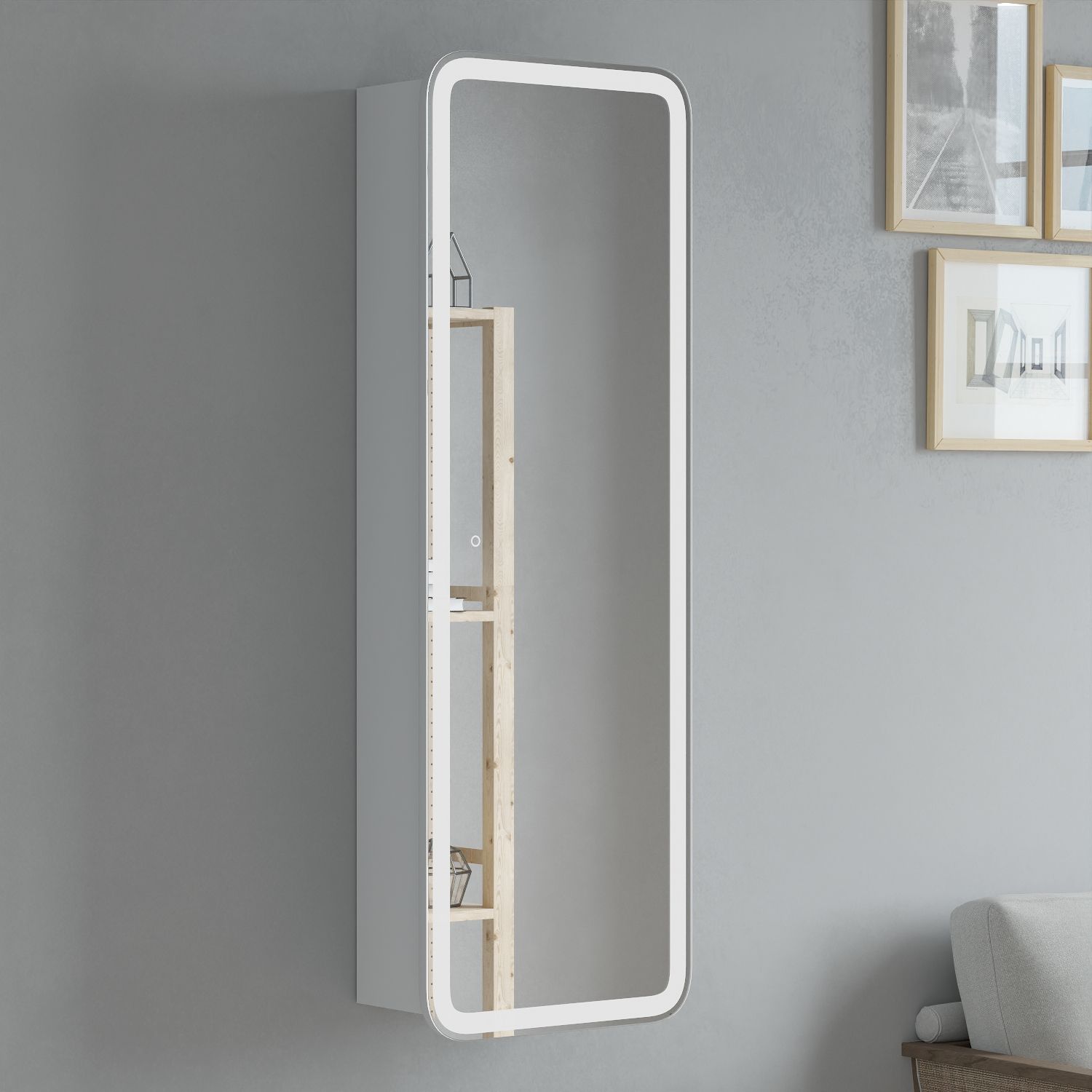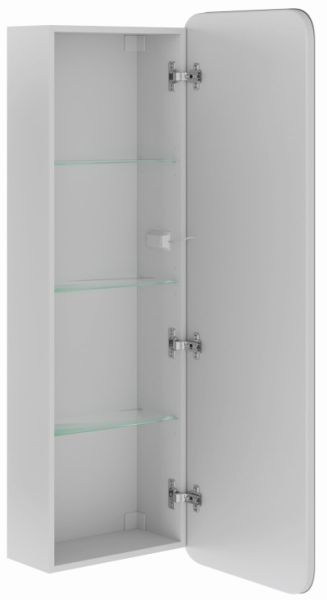 Габариты ШхГхВ (см): 45x20x136Вид мебели: Шкаф-пеналВид установки мебели: ПодвеснаяСтрана: РоссияЗеркало-пенал Кадиллак 45 оснащено распашной зеркальной дверью. Зеркало с круговой областью пескоструя, внутри 3 стеклянные полочки. Петли у двери с доводчиками. Зеркало-пенал можно сделать правого или левого открывания. Видимые части зеркального шкафа - LED зеркало, у которого задняя стенка закрыта коробом из АВС-пластика. Подсветка на зеркале включается и выключается нажатием кнопки на самом зеркале. Сенсорный выключатель с регулировкой яркости. На боковине снаружи находится розетка.