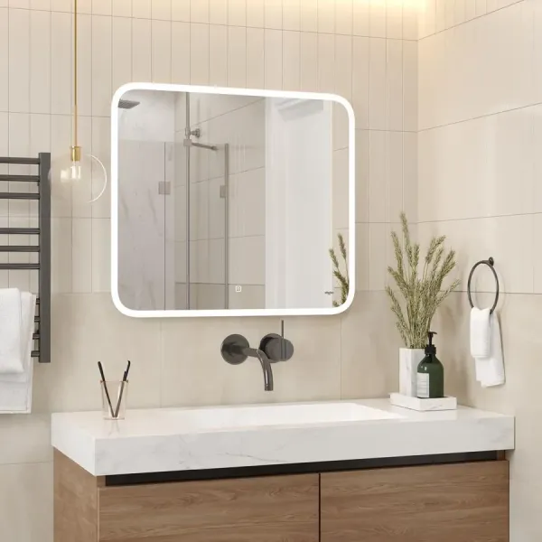 Использование качественных комплектующих обеспечивает долгий срок службы. Защита по стандарту IP54, позволяет использовать зеркало в помещениях с повышенной влажностью. Подсветка 6000K позволяет использовать зеркало как элемент дополнительного освещения.