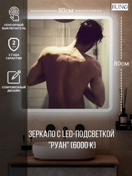 Зеркало RUNO с подсветкой 800х800 Руан Led (00-00001289) купить