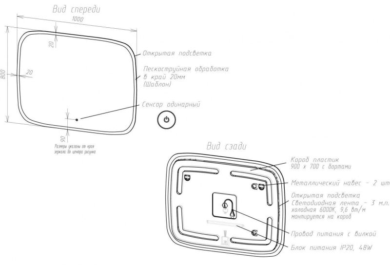 Тип:зеркало с подсветкой