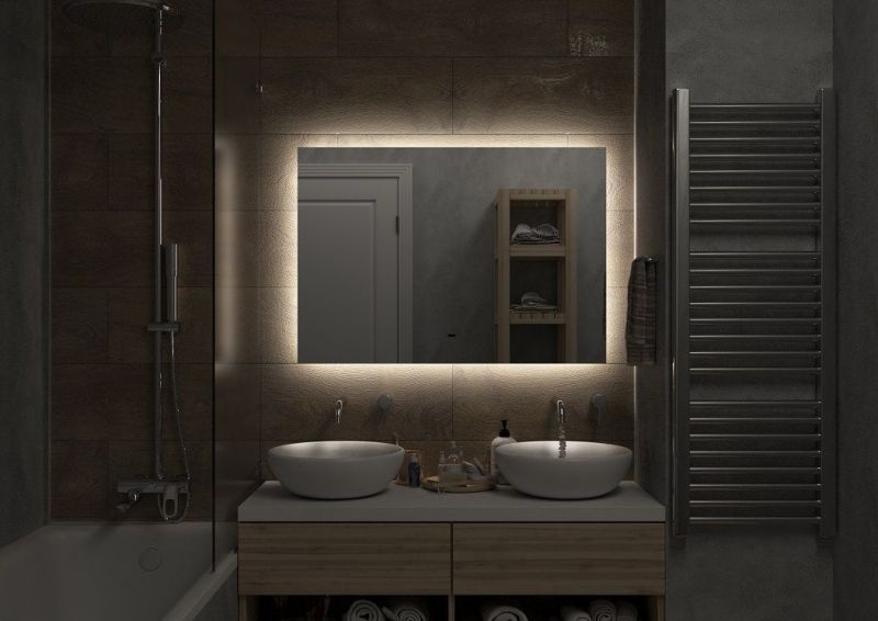Зеркало, оснащенное светодиодной LED подсветкой с диммером .