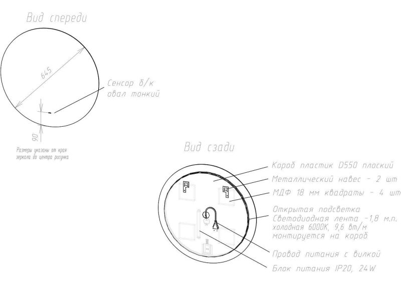 Тип:зеркало с подсветкой