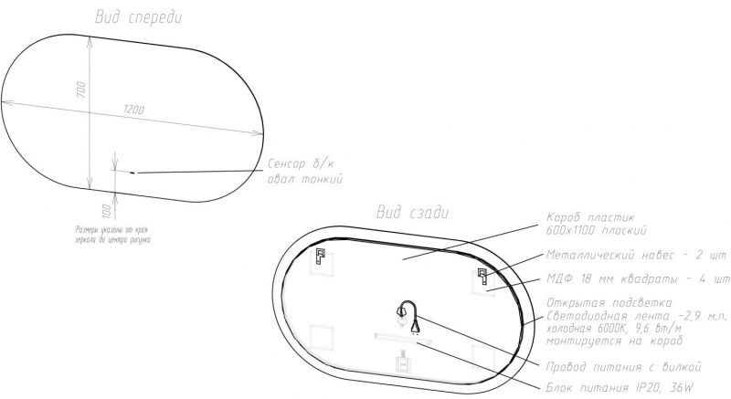 - Питание светильника от сети 220В через блок питания постоянного напряжения