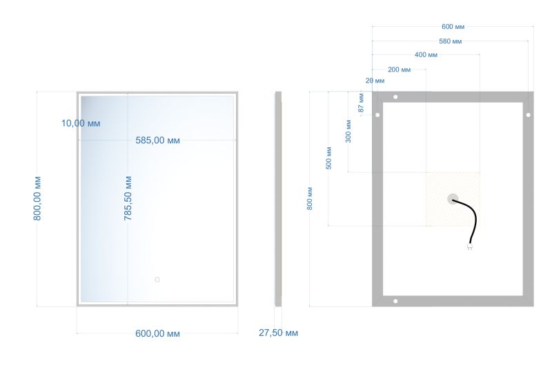 Зеркало ABBER See AG6108S-0.6 с подсветкой, сенсорный выключатель, диммер