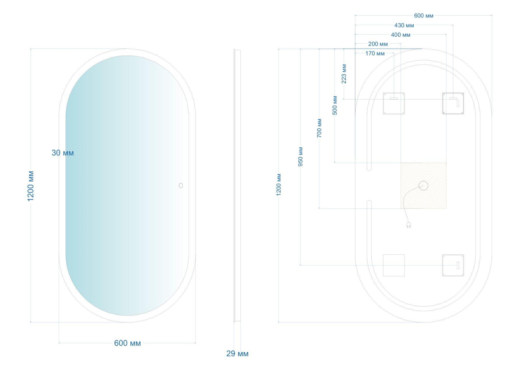Зеркало ABBER See AG6113SMult с подсветкой, сенсорный выключатель, диммер