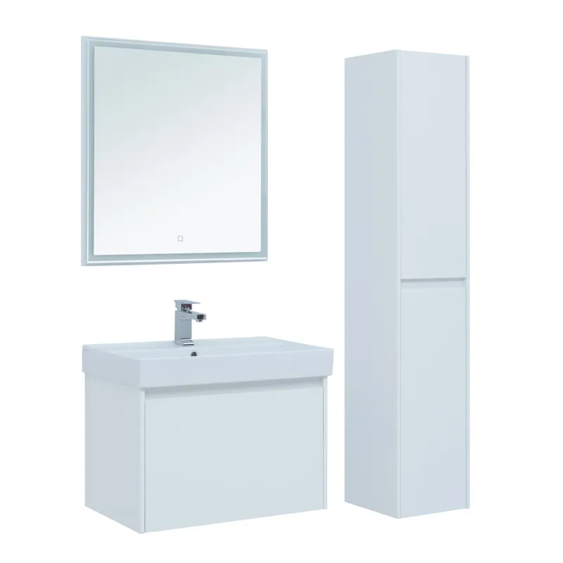 Зеркало Aquanet Nova Lite шириной 75 см отлично вписывается в комплект с тумбой белоснежного цвета из влагостойкой ламинированной древесно-стружечной плиты. Выполняет сразу две функции: непосредственно зеркала и осветительного прибора, благодаря LED-подсветке по периметру.
