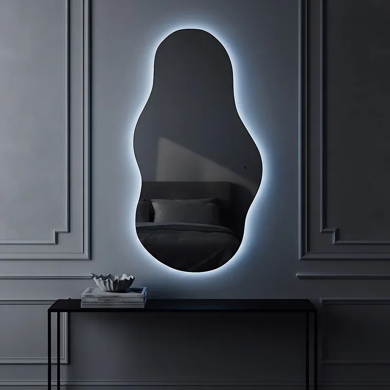 Зеркало креативной формы для ванной комнаты и интерьеров, оснащенное светодиодной LED подсветкой с диммером .