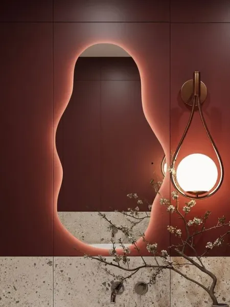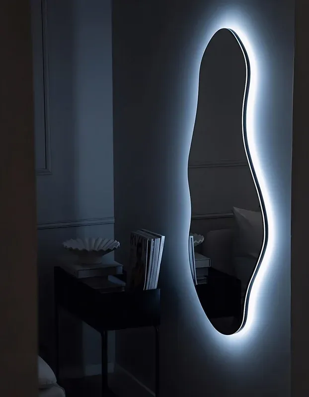 Ореольная подсветка подчеркивает форму зеркала и создает эффект "парения".