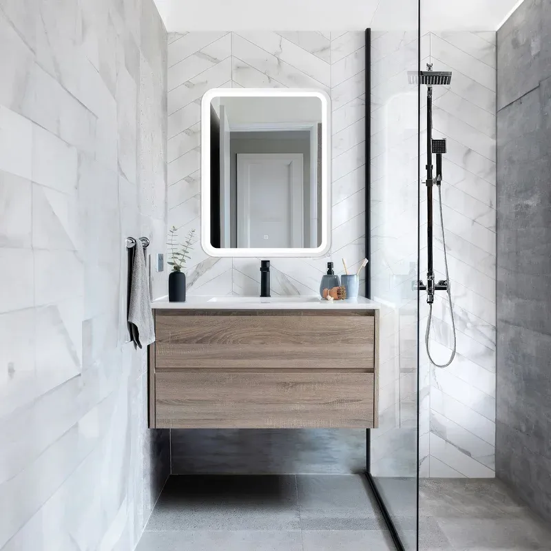 Зеркало оснащенное светодиодной LED подсветкой с диммером и сенсорным выключателем .