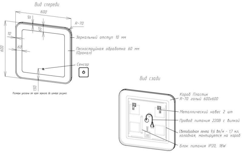Зеркало с подсветкой Art&Max Latina 60см AM-Lat-600-600-DS-F