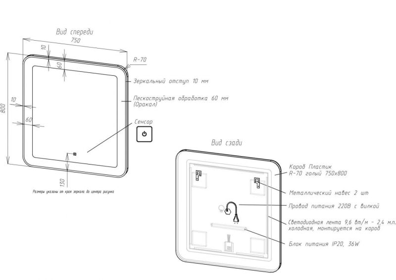 • Толщина зеркального отступа: 10 мм