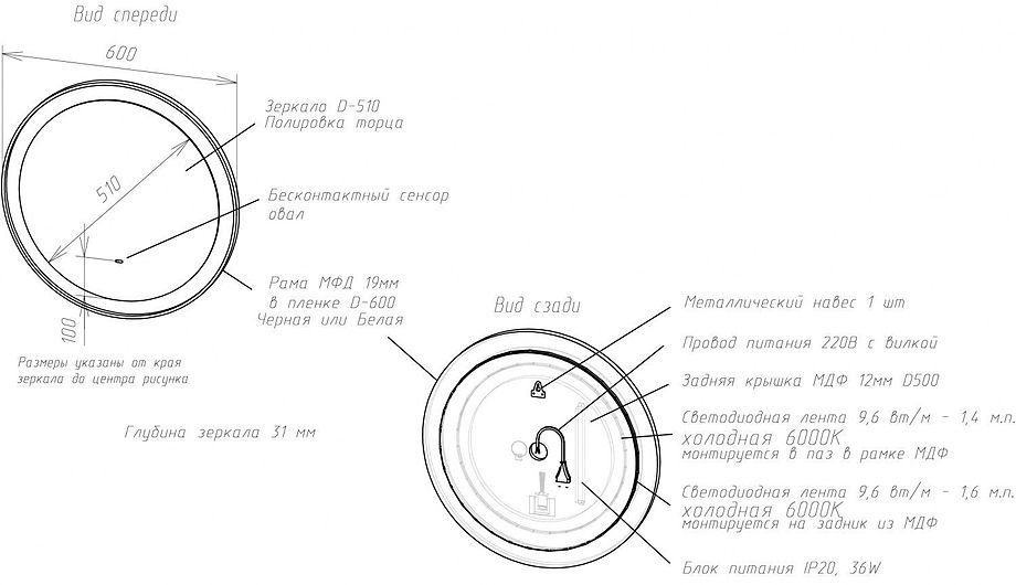 Зеркало с подсветкой Art&Max Napoli 60см белый матовый AM-Nap-600-DS-F-White