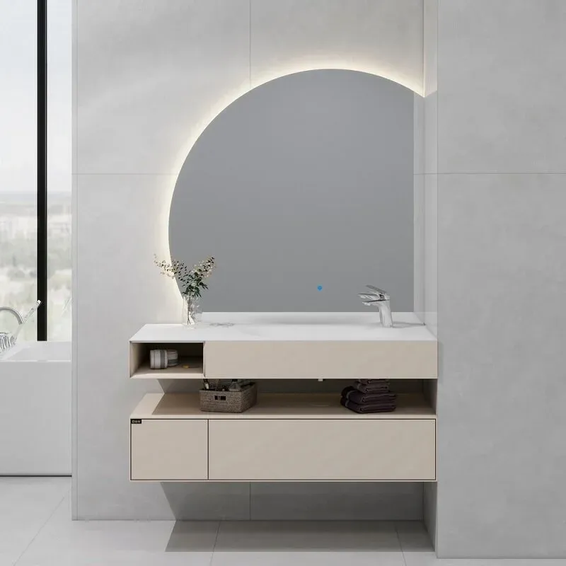 Угловое зеркало из коллекции U 955 в габаритных размерах 100 x 3,5 см. Зеркальное полотно закреплено на основании из МДФ, а диодная лента изолирована от влаги в силиконовой трубке, что позволяет увеличить ресурс всего изделия. Кнопка включения сенсорная, также при использовании автоматически срабатывает функция антизапотевания.