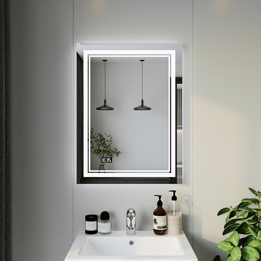 Зеркало с подсветкой Бриклаер Эстель-2 4627125414282 с часами 60 см на взмах руки