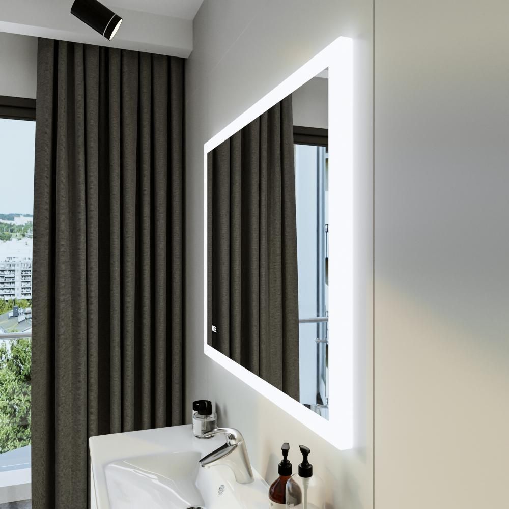 Зеркало с подсветкой Бриклаер Вега/Мальта 4627125414381 с часами 100 см на взмах руки купить
