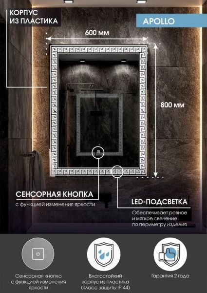 Зеркало "Apollo Led" 600х800LED подсветка 6000Ксенсорный выключатель с функцией димирования