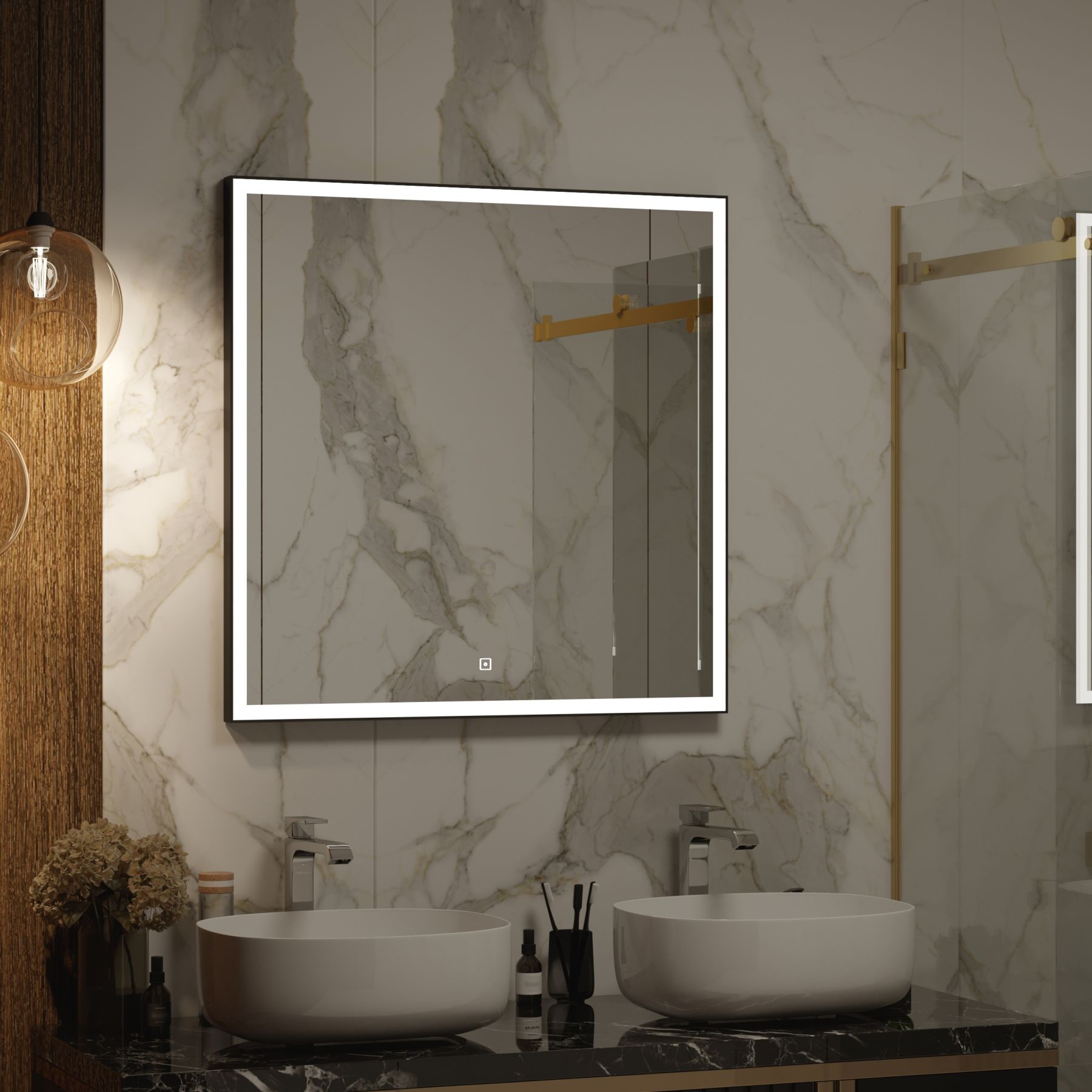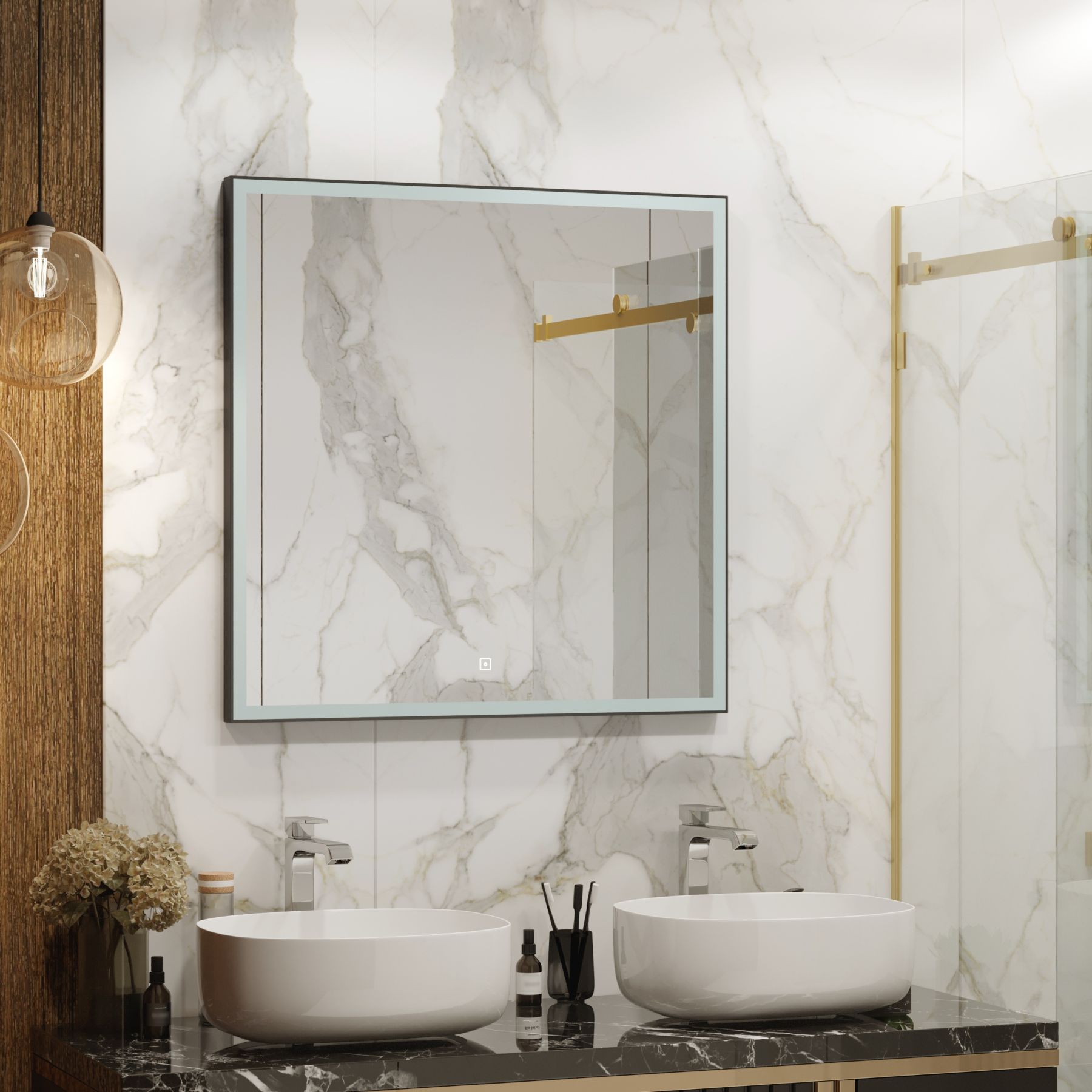 Зеркало "Frame Black LED" 800х800LED подсветка 6000Ксенсорный выключателькороб из алюминиевого профиля черного цвета