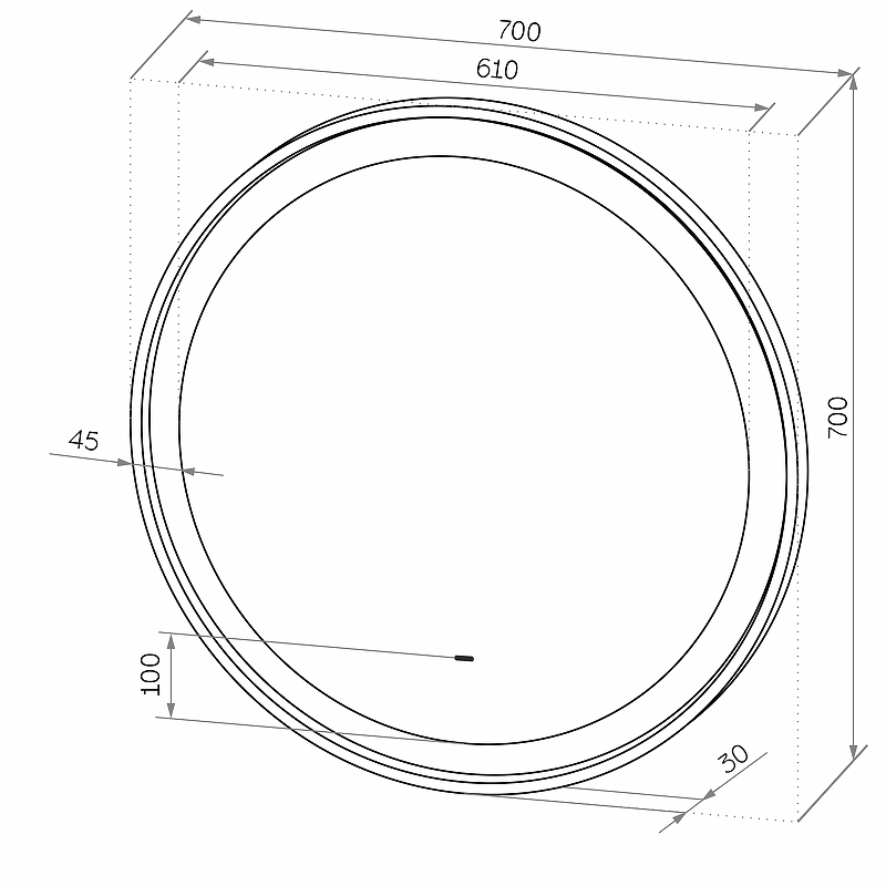 Зеркало "Planet white Led" D 700 с бесконтактным сенсоромLED подсветка 6000Кбесконтактный сенсор с функцией димированиярама - МДФкороб в белой пленке
