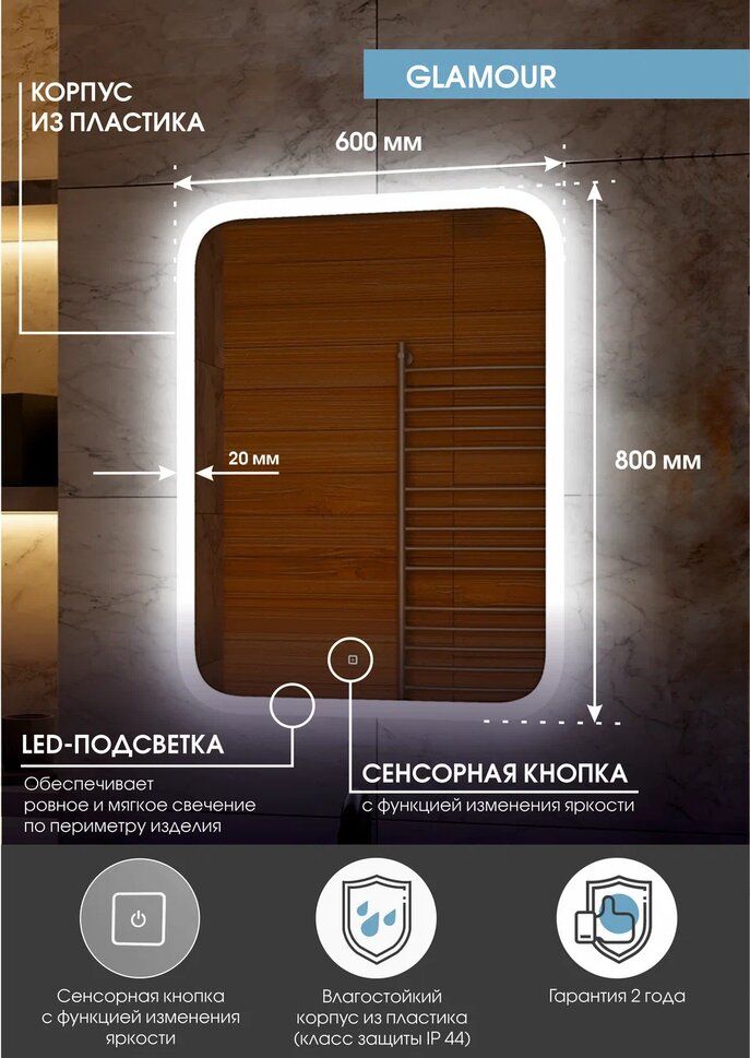 Зеркало"Sevilla Led" 800х900LED подсветка 6000Ксенсорный выключатель с функцией димирования