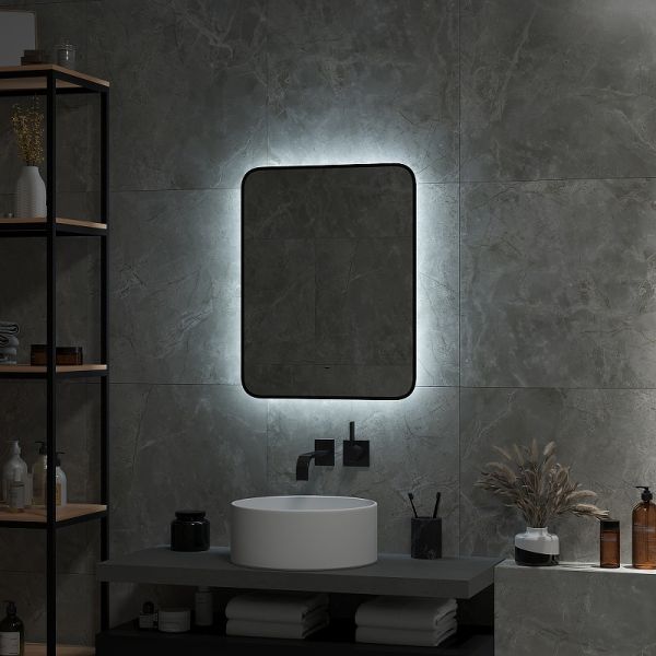Зеркало "Torry Led" с фоновой подсветкой, бесконтактным сенсором, черной окантовкой 500х700LED подсветка 6000К; бесконтактный сенсор с функцией димирования;открытая ореольная подсветка.