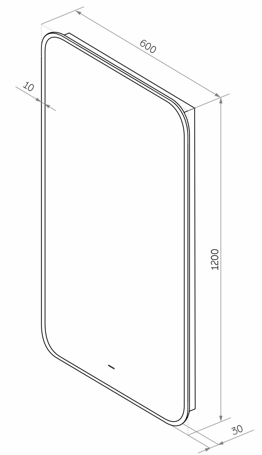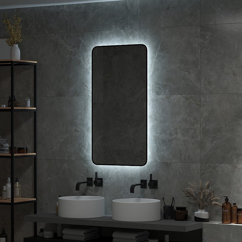 Зеркало "Torry Led" с фоновой подсветкой, бесконтактным сенсором, черной окантовкой 600х1200LED подсветка 6000К;бесконтактный сенсор с функцией димирования;открытая ореольная подсветка.