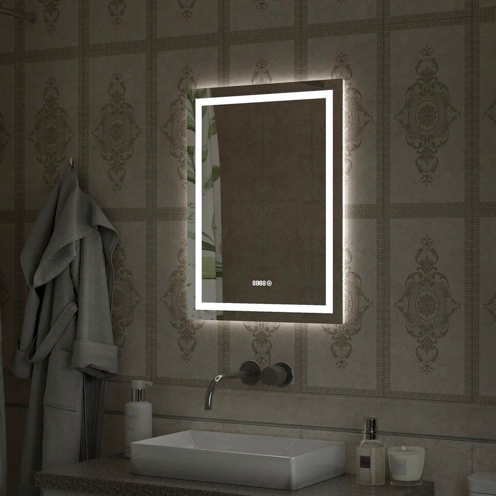 Зеркало "Verte Led" 600х800 с часами, датчиком движенияLED подсветка 6000Кдатчик движениявстроенные часы