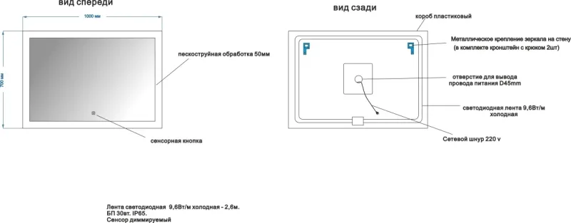 Зеркало с подсветкой и функцией антизапотевания Art&Max Soli 100x70см AM-Sol-1000-700-DS-F-H