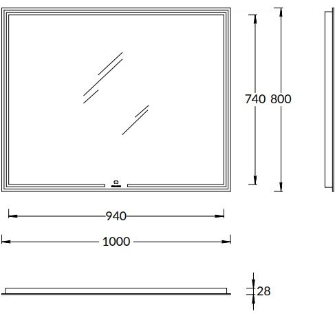 Зеркало MiO выполнено с деликатной подсветкой по периметру. Светодиодная подсветка включается одним прикосновением к сенсору в нижней части зеркального полотна, там же нанесён логотип KERAMA MARAZZI. Имеется встроенный диммер.