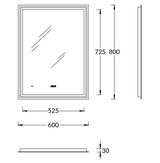 Прямоугольное зеркало TECNO готово стать эстетическим центром ванной комнаты благодаря сенсорной подсветке по всему периметру. Подсветка включается и выключается бесконтактно по взмаху руки, таким же способом регулируется характер освещения (холодное, тёплое, естественное). В зеркалах TECNO отражён целый ряд технических новшеств для ванной комнаты, в том числе функция «антизапотевание» (включается и выключается вместе с подсветкой), а также дисплей с часами прямо на зеркальной поверхности. В комплектацию входят крепление, гарантийный талон, инструкция по установке.