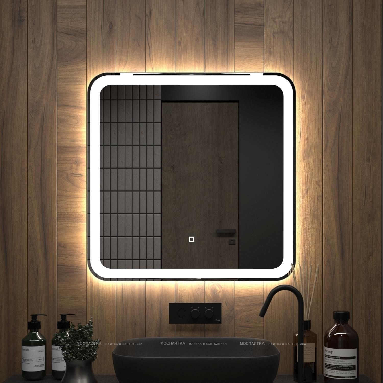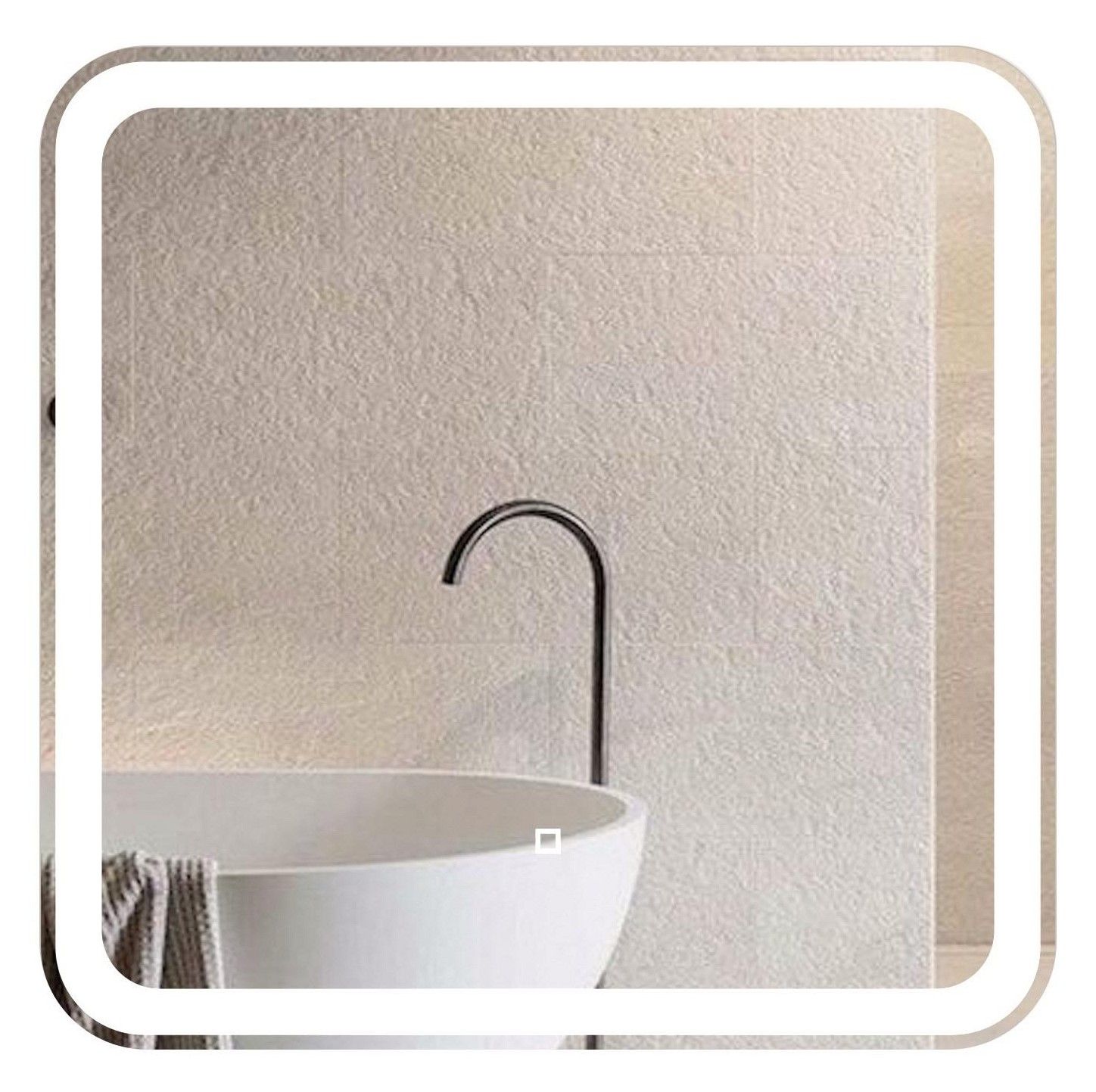 Яркость LED-подсветки регулируется при помощи встроенного диммера и сенсорной кнопки на поверхности зеркала.