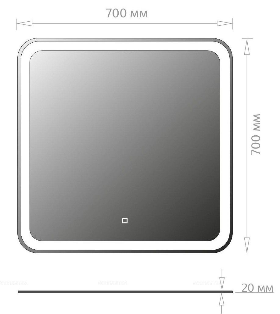 Размер зеркала 70 х 2 х 70 см.