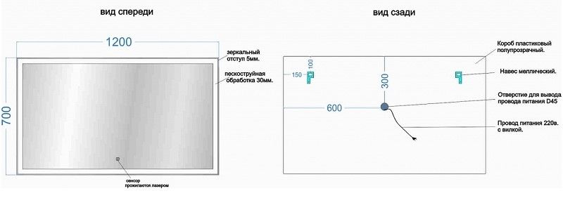 Тип:зеркало с подсветкой