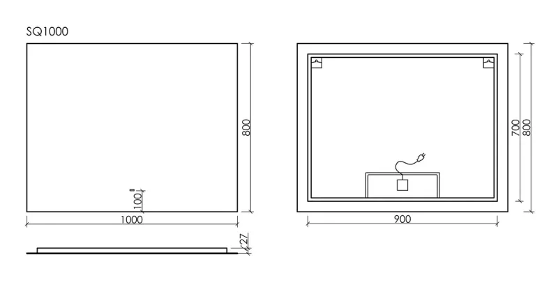 Зеркало с подсветкой Sancos Square SQ1000 100см