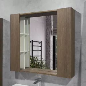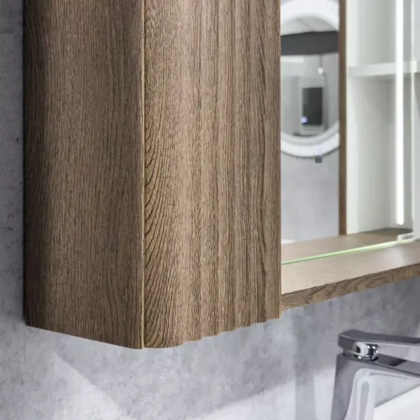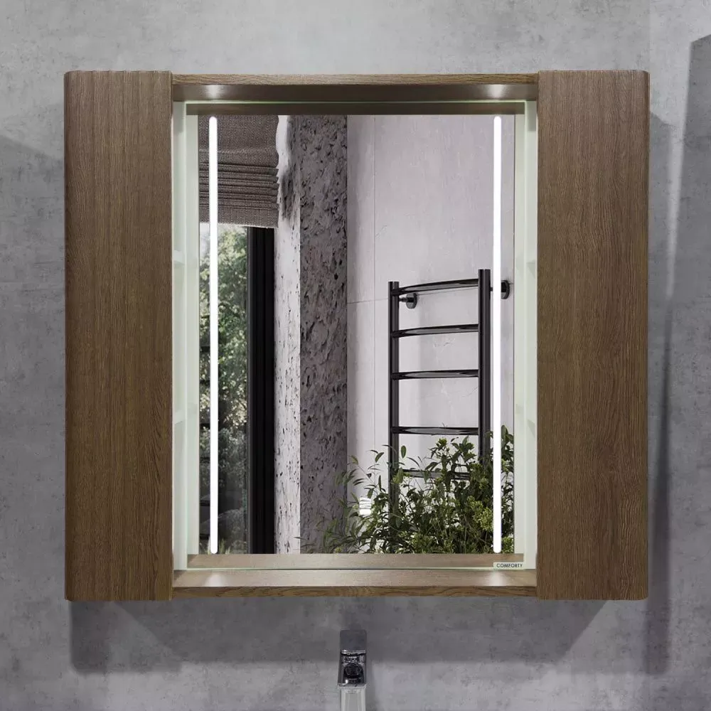 Зеркало-шкаф Comforty Ангара-90 дуб темно-коричневый с LED подсветкой и антизапотеванием