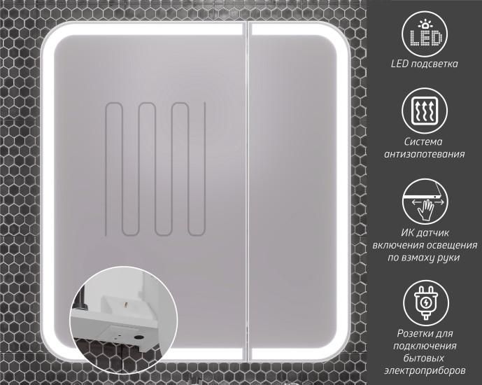 С розеткой для подключения электробытовых приборовСтрогий контроль при изготовлении изделий исключает наличие малейших дефектов. Зеркальное полотно дает четкое отражение без каких-либо искажений. Белый матовый цвет прекрасно дополнит интерьер ванной комнаты.Опадирис - высококачественная мебель, оригинальный дизайн, достойное качество отвечает самым высоким требованиям, лучшие экологически чистые материалы и комплектующие. Изысканные очертания мебели OPADIRIS - это воплощение высочайшего мастерства, насладиться которым могут счастливые обладатели фирменных изделий и аксессуаров.
