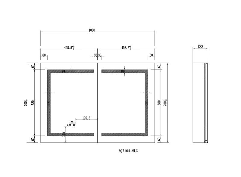 Габариты (Д В Ш), мм: 1000*700*133Алюминиевый зеркальный шкаф с подсветкойФорма: прямоугольнаяМонтаж: подвесной, монтируется на поверхность или в нишуДве зеркальные дверцы шириной 49,85см. Двусторонние зеркальные двери и зеркальные боковиныДве стеклянные полки 8 мм.Материал: алюминийЦвет: хромЗеркальный салонКруговая подсветка SMD 2835-120P, цветовая температура 2500K/6500KФункция антизапотевания2 режима переключения света/ цветаСенсорное управлениеС механизмом доводчика, обеспечивающим плавное закрываниеМебель поставляется в собранном видеДополнительное оснащение зеркала: подвесыГарантия: 1 год