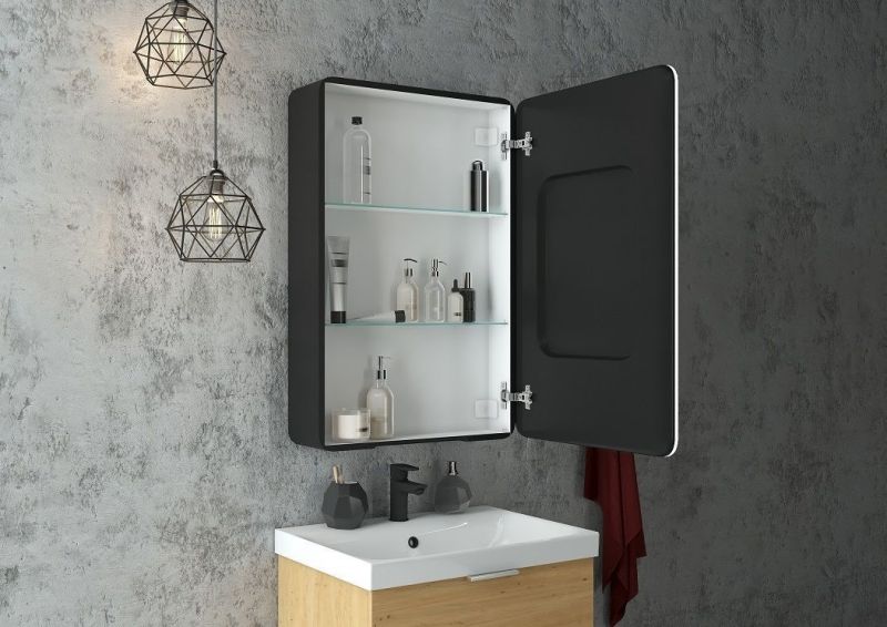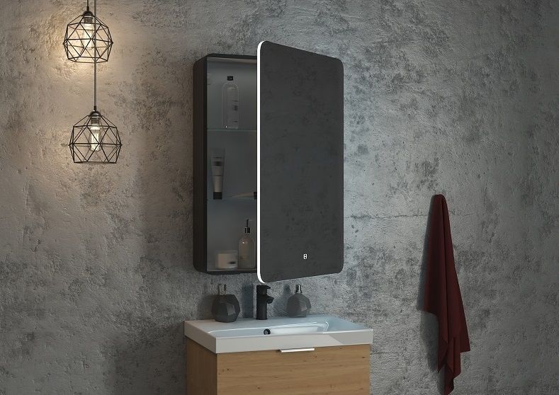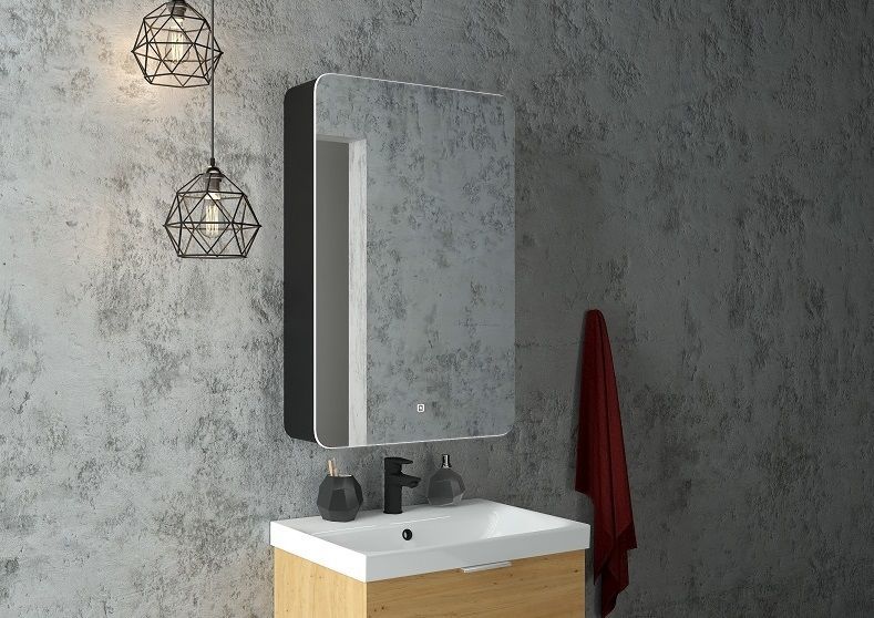 Зеркало-шкаф с подсветкой Art&Max Lecce правый 56см чёрный матовый AM-Lec-560-850-1D-R-DS-F-Nero