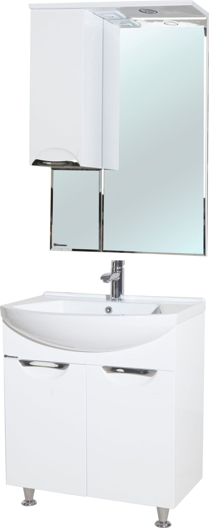 В производстве используют только качественные влагостойкие материалы (ВЛДСП), в составе которых полностью отсутствуют опасные вещества. Данная серия выполнена в эксклюзивном дизайнерском решении в лучших традициях современного стиля. Белый, основной цвет исполнения Bellezza, гармонирующий с большинством интерьерных решений. Шкаф-зеркало предусматривает удобную и вместительную систему хранения. Зеркало Bellezza оснащено галогеновой подсветкой, позволяющей комфортно провести утренние процедуры.