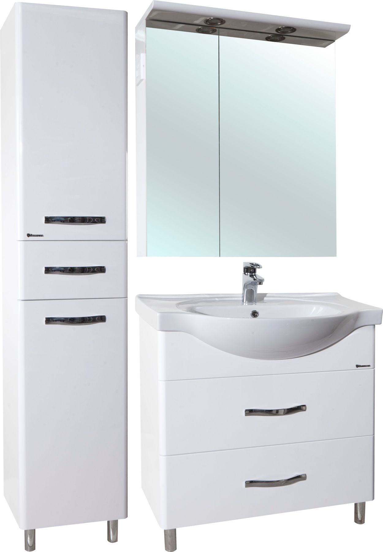 В производстве используют только качественные влагостойкие материалы (ВЛДСП), в составе которых полностью отсутствуют опасные вещества. Данная серия выполнена в эксклюзивном дизайнерском решении в лучших традициях современного стиля. Белый, основной цвет исполнения Bellezza, гармонирующий с большинством интерьерных решений. Шкаф-зеркало предусматривает удобную и вместительную систему хранения. Зеркало Bellezza оснащено галогеновой подсветкой, позволяющей комфортно провести утренние процедуры.