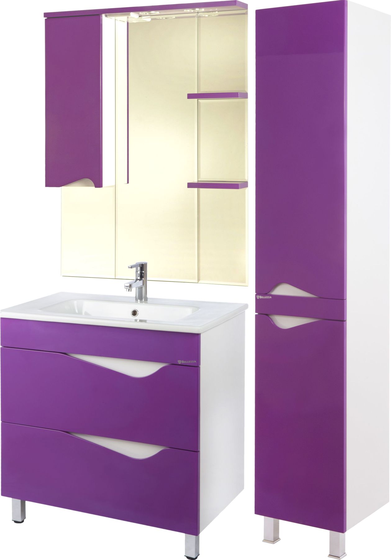 Компания Bellezza использует при производстве высококачественные водоотталкивающие материалы (ВЛДСП), соответствующие всем необходимым требованиям безопасности. Серия отличается превосходным дизайном с соблюдением всех значимых элементов современного стиля. Основным цветом, в котором выполнено шкаф-зеркало Bellezza является фиолетовый, отлично подходящий большинству дизайнерских решений. Шкаф-зеркало предусматривает удобную и вместительную систему хранения, состоящую из дверей. Качественные доводчики позволяют обеспечить мягкое и тихое закрывание. Зеркало Bellezza оснащено галогеновой подсветкой, позволяющей комфортно провести утренние процедуры.