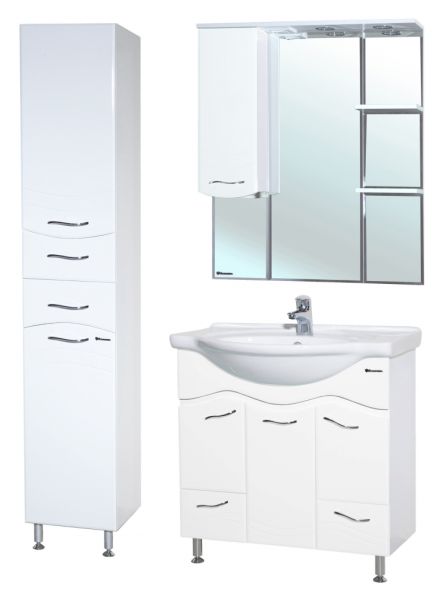 В производстве используют только качественные влагостойкие материалы (ВЛДСП), в составе которых полностью отсутствуют опасные вещества. Данная серия выполнена в эксклюзивном дизайнерском решении в лучших традициях современного стиля. Белый, основной цвет исполнения Bellezza, гармонирующий с большинством интерьерных решений. Шкаф-зеркало предусматривает удобную и вместительную систему хранения. Зеркало Bellezza оснащено галогеновой подсветкой, позволяющей комфортно провести утренние процедуры.