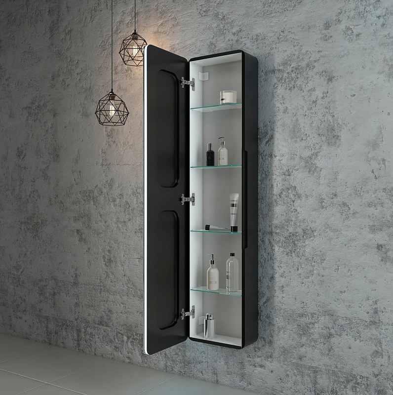 Зеркало-шкаф "Eltoro black LED" 360х1560LED подсветка 6000К; сенсорный включатель с функцией димирования, материал корпуса - МДФ, цвет корпуса - черный, реверсивные крепления