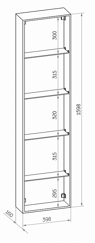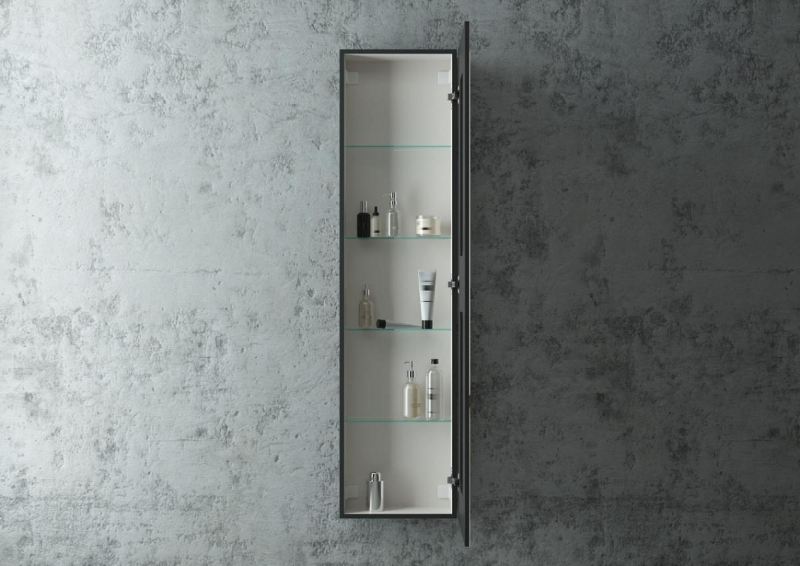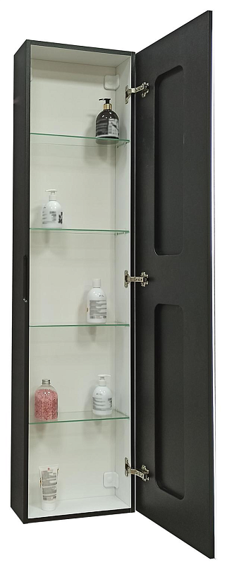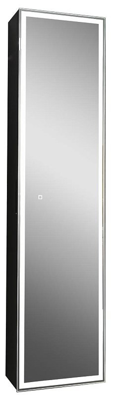 Зеркало-шкаф "Mirror Box black Led" 400х1600LED подсветка 6000К;сенсорный включатель с функцией димирования, материал корпуса - МДФ пленка ПВХ с эффектом Soft touch, цвет корпуса - черный,реверсивные крепления